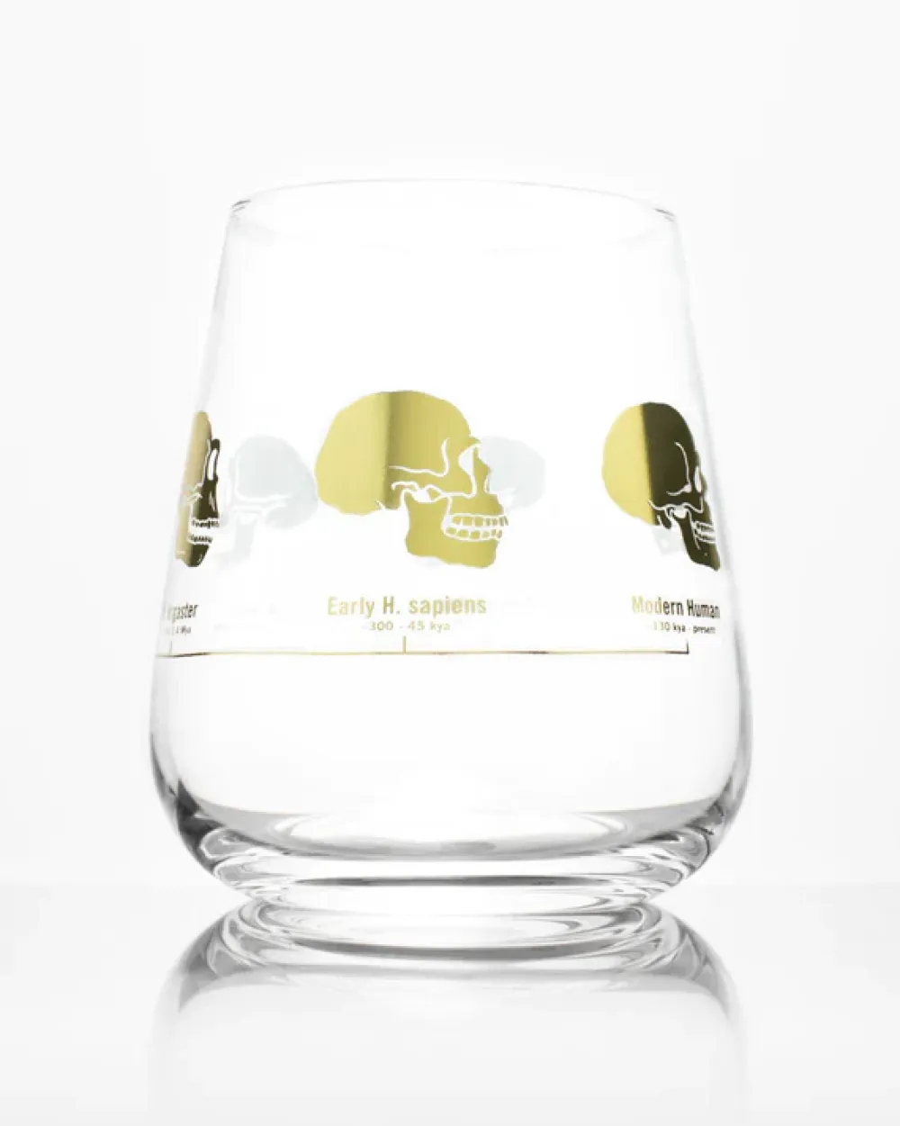 Pour yourself a glass of wine and strike up a casual conversation about paleoanthropology with this Hominid Skulls Wine Glass.