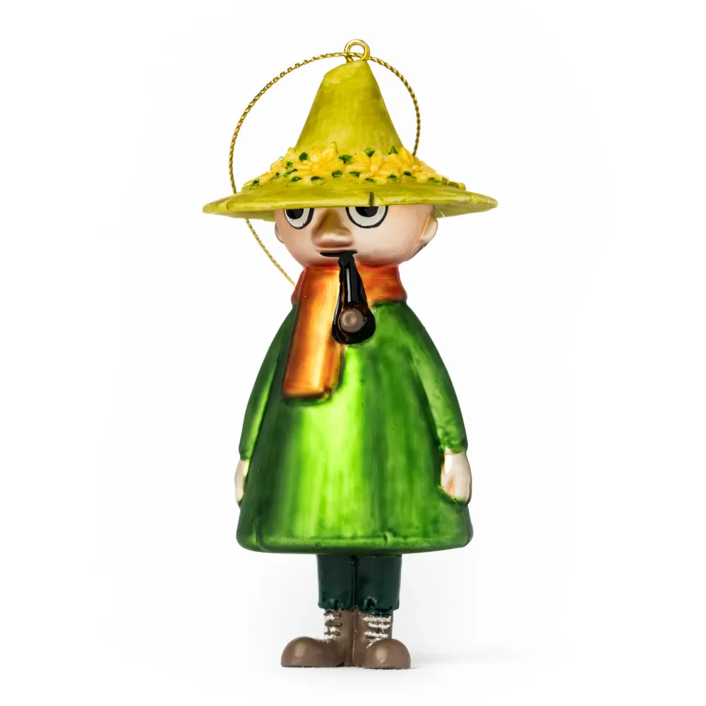 SNUSMUMRIKEN er 11 cm høy og kommer i en fin eske. Han står oppreist av seg selv, og passer like godt på peishyllen som på juletreet. En av seks Moomin julekuler laget av HEIM.