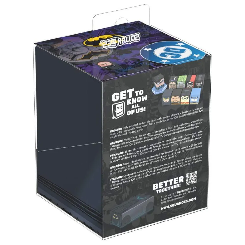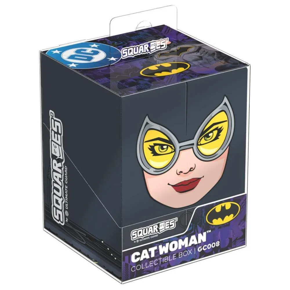 Collectible box for storing TCG decks, tabletop gaming accessories, and/or collectibles. The Cat Woman Squaroe from the Batman: Gotham City edition holds up to 100 cards in double protective sleeves if used as a deck box. Squaroes are made from 78% renewable resources and fit perfectly into the separately available Collectors Case.