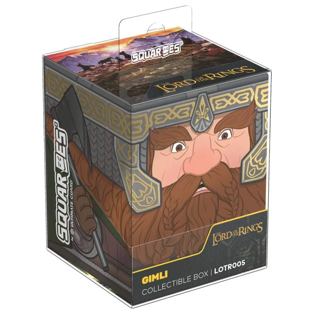 Collectible box for storing TCG decks, tabletop gaming accessories, and/or collectibles. The Gimli Squaroe from the The Lord of the Rings edition holds up to 100 cards in double protective sleeves if used as a deck box. Squaroes are made from 78% renewable resources and fit perfectly into the separately available Collectors Case.