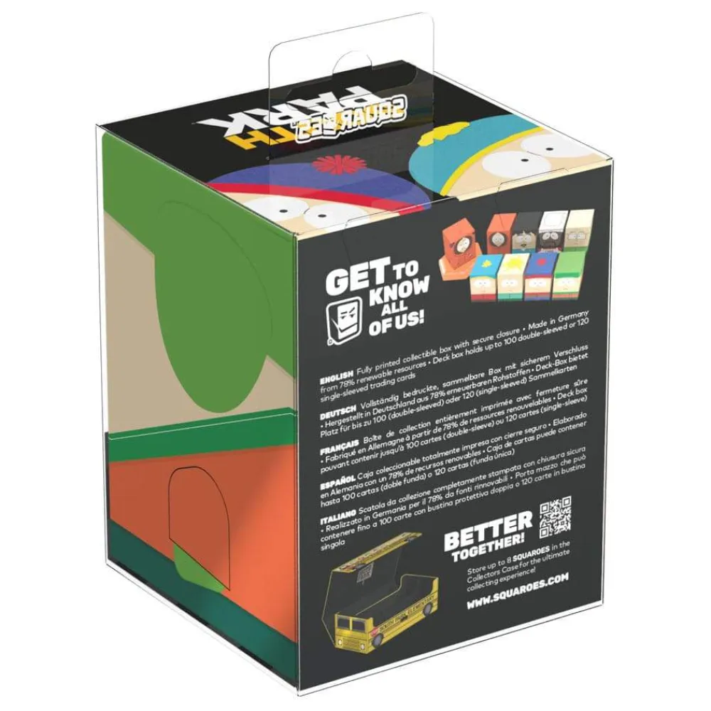 Collectible box for storing TCG decks, tabletop gaming accessories, and/or collectibles. The Kyle Squaroe from the South Park™ edition holds up to 100 cards in double protective sleeves if used as a deck box. Squaroes are made from 78% renewable recources and fit perfectly into the separately available Collectors Case.