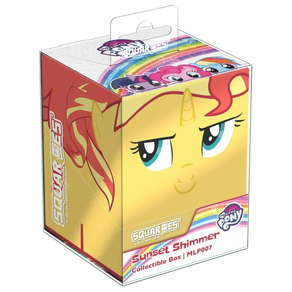 Collectible box for storing TCG decks, tabletop gaming accessories, and/or collectibles. The My Little Pony «Friendship is Magic» edition Squaroe holds up to 100 cards in double protective sleeves if used as a deck box. Squaroes are made from 78% renewable recources.