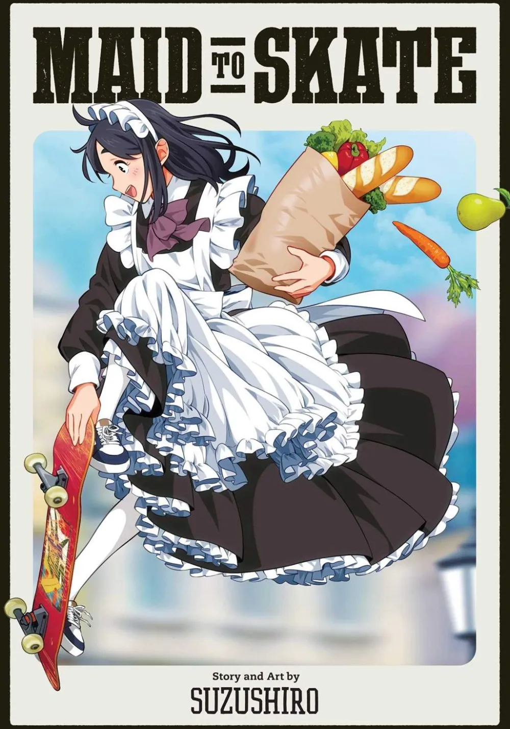 In this world, maids go about their everyday lives dressed in long black dresses, frilly aprons—and skate shoes?! Whether they’re running errands or hitting the half-pipe, these maids shred the town. Like witches have their brooms, these ladies have their boards. If one thing’s certain, these maids are totally Maid to Skate.