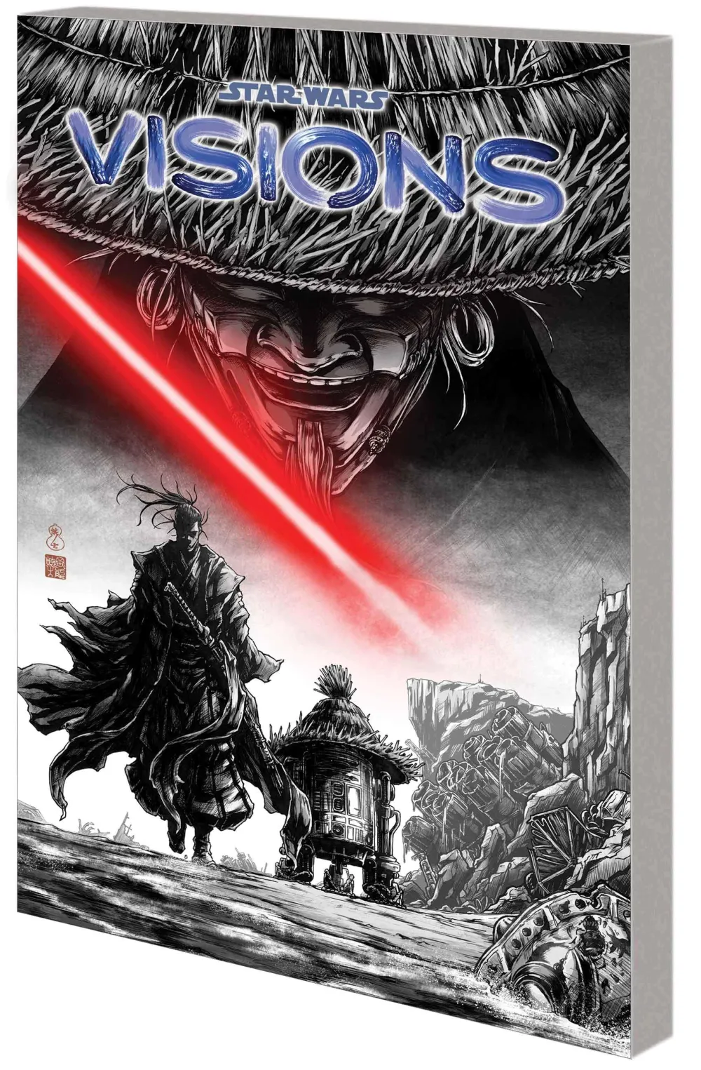 Manga legend Takashi Okazaki continues his storytelling from the acclaimed Star Wars: Visions «The Duel,» featuring the Ronin – fusing the mythology of Star Wars with elements of Feudal Japan! We know the Ronin as a fearsome Sith slayer, but who was he before? Discover the early days of the fan-favorite character! Then, acclaimed creator Peach Momoko unleashes her own visionary storytelling! Centuries after the death of a great Sith Lord, a cult has grown worshipping them…and the Dark Side. Ankok believes she is the successor to this deadly legacy! But is she truly in tune with the Force? Or is she just exploiting the people in her village? Kako and Gel are about to come face-to-face with the truth – even if it kills them! Collecting STAR WARS: VISIONS, STAR WARS: VISIONS – PEACH MOMOKO, STAR WARS: VISIONS – TAKESHI OKAZAKI and material from STAR WARS: DARTH VADER – BLACK, WHITE & RED #1.