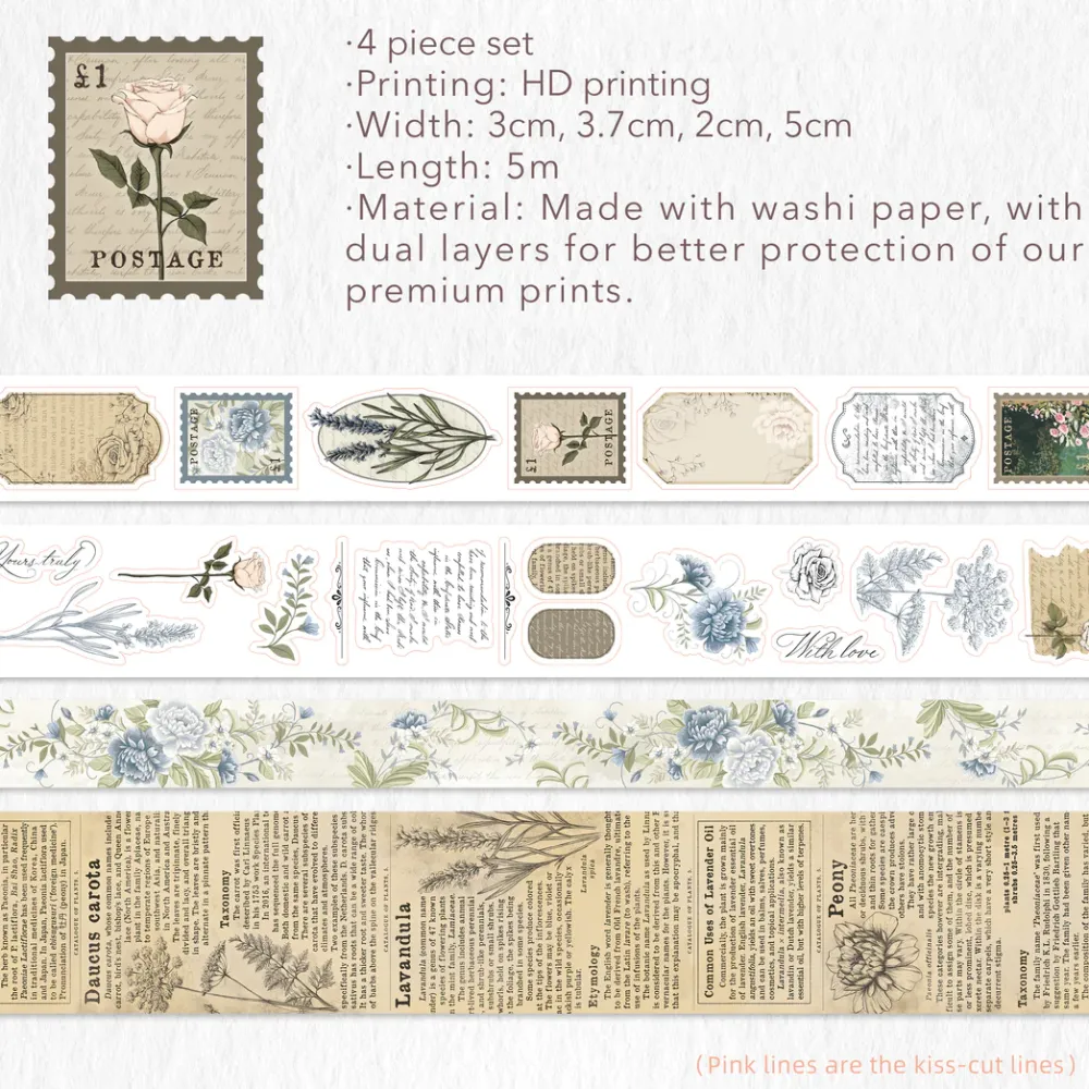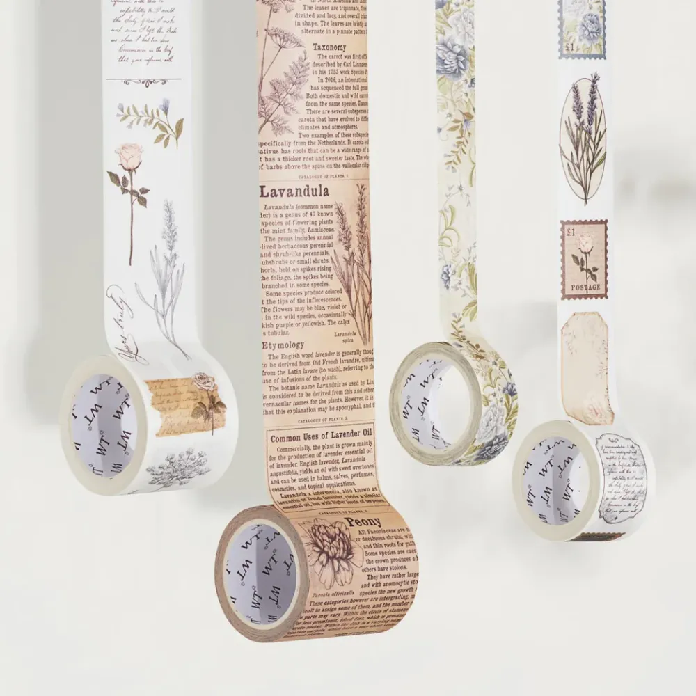 Petals & Parchment is inspired by the idea of a botanist’s old journal, containing scribbles and drawings of flowers. This collection combines the joy of regular washi tapes and washi stickers in calming neutral tones and romantic vintage feel.
