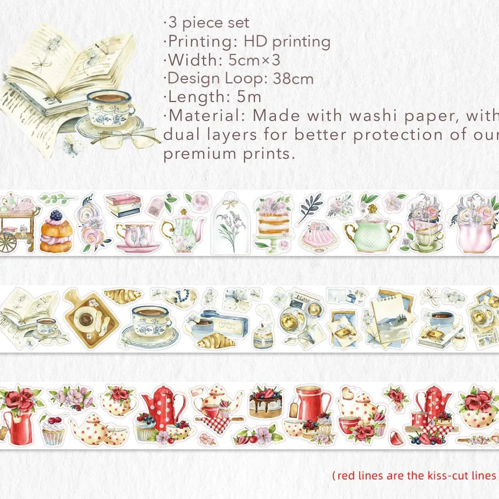 Dykk inn i kreativiteten mens delikate akvarellerte og deilige desserter står i sentrum. Enten du piffer opp planleggeren din, pusser opp journalen din eller legger til stil til håndverket, er disse tapene den perfekte blandingen av deilighet og stil. Hev hverdagens øyeblikk med et snev av Tea Temptations-magi!