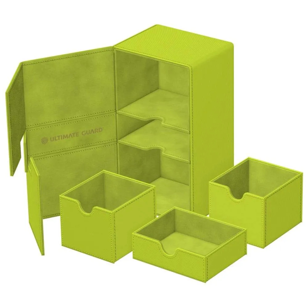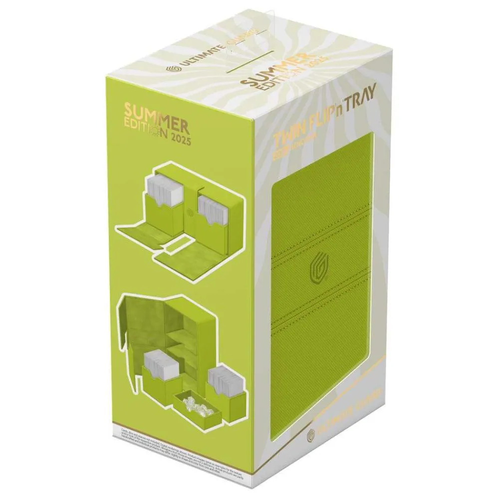 Catch the ultimate summer vibes with Ultimate Guard’s Twin Flip’n’Tray 200+ Xenoskin from the limited «Summer Edition 2025» in four vibrant new colors: Dandelion, Peach, Lime and Lagoon! The Twin Flip’n’Tray deck box features two independently accessible trays with quality microfiber inner lining for 100 double-sleeved or 120 single-sleeved cards each. Additionally, the resistant Xenoskin box has a removable accessory tray and a strong magnetic closure to keep the Magic: The Gathering, Pokémon, Lorcana, One Piece or Yu-Gi-Oh! cards inside safe.