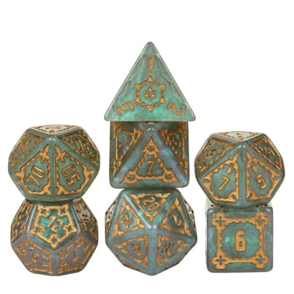 Et sett med syv forskjellige terninger, som passer til rollespill. Inkluderer: D4, D6, D8, D10, D12, D20 og en prosentterning.