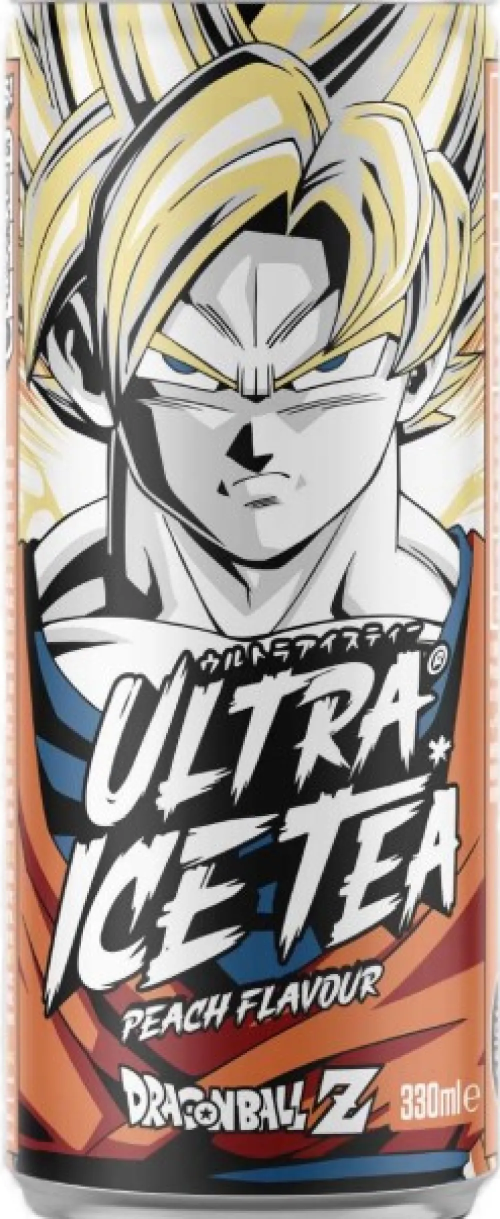 Isté med Ferskensmak. Boksen har et kult motiv med fra Dragon Ball Z.