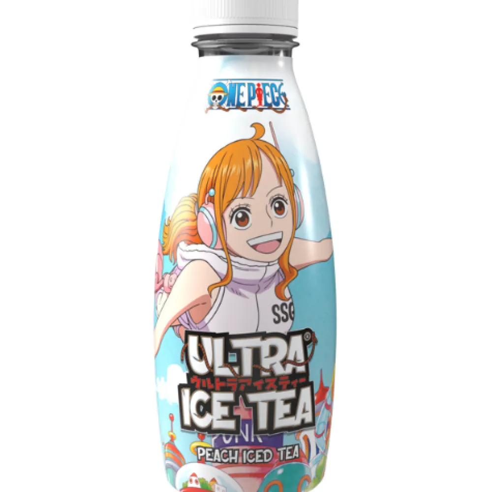 Isté med fersken og sitronjuice fra konsentrat. Flaske med motiv fra den verdenskjente manga og animeserien One Piece.