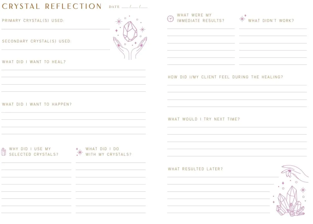 70 ENTRIES: Start your reflection journey at any time of the year with 70 entries for you to write down noteworthy moments from each crystal healing session