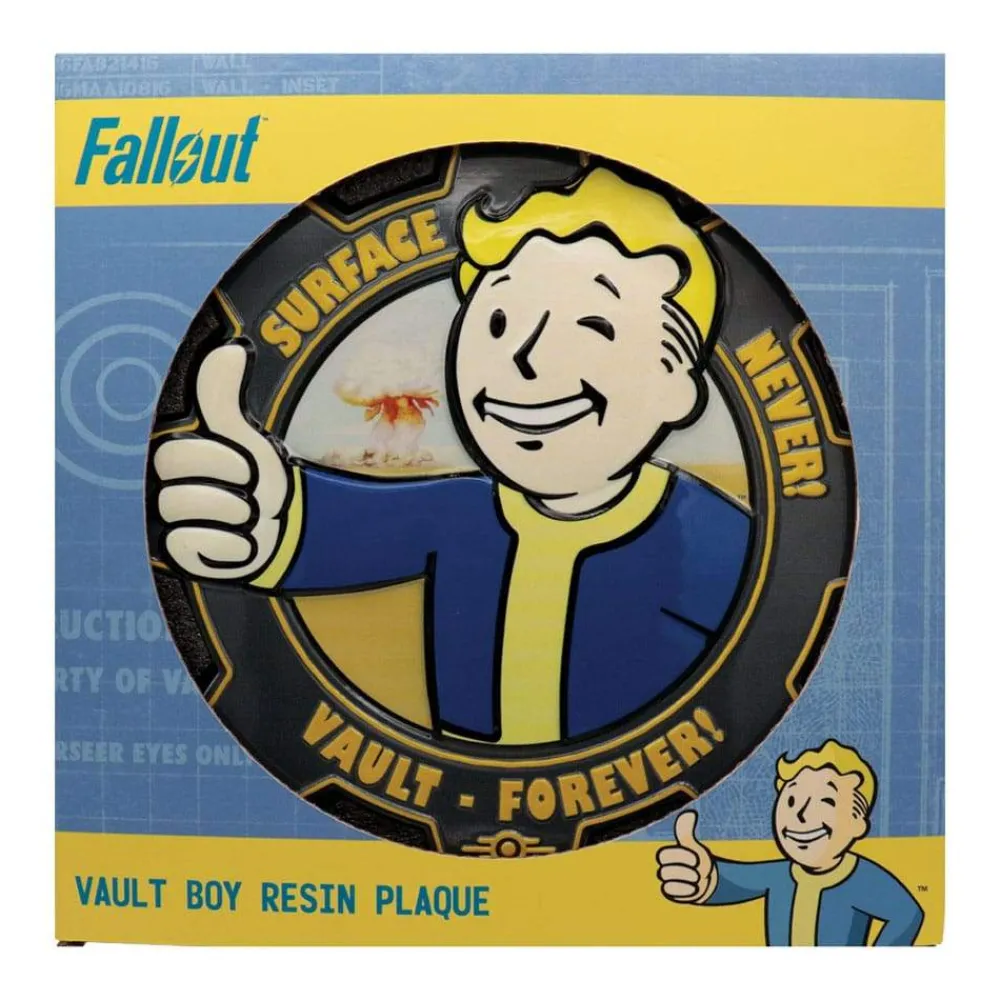 Featuring the one and only Vault Boy flashing his iconic thumbs-up, this plaque brings a dose of retro Wasteland charm to any room. Crafted from resin with a vibrant full colour print this plaque measures 200 x 198mm and is supplied with both a wall-hanging hook and built-in stand, so you can display it wherever your survival instincts lead you!