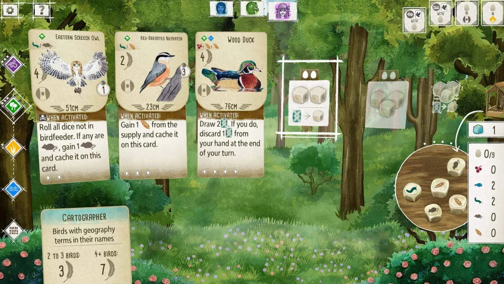 Each bird you play extends a chain of powerful combinations in one of your three habitats. Your goal is to discover and attract the best birds to your network of wildlife preserves.
