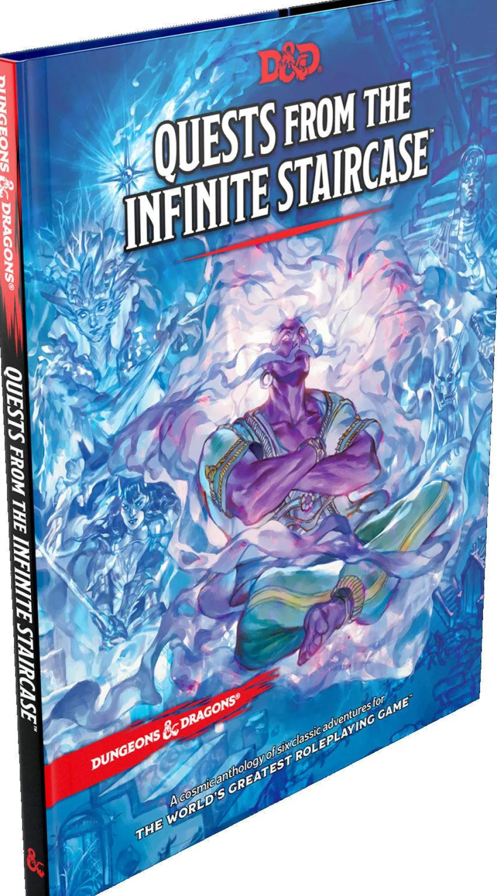 Quests from the Infinite Staircase embraces the magic of the most beloved DUNGEONS & DRAGONS® adventures of all time. Your journey begins in the Infinite Staircase, a dreamlike expanse with doors leading to fantastical worlds, where you’ll meet Nafas, a noble genie who fulfills wishes with the help of valiant heroes—like you! As you explore what lies beyond each door, embark on timeless adventures and make memorable moments with your party.