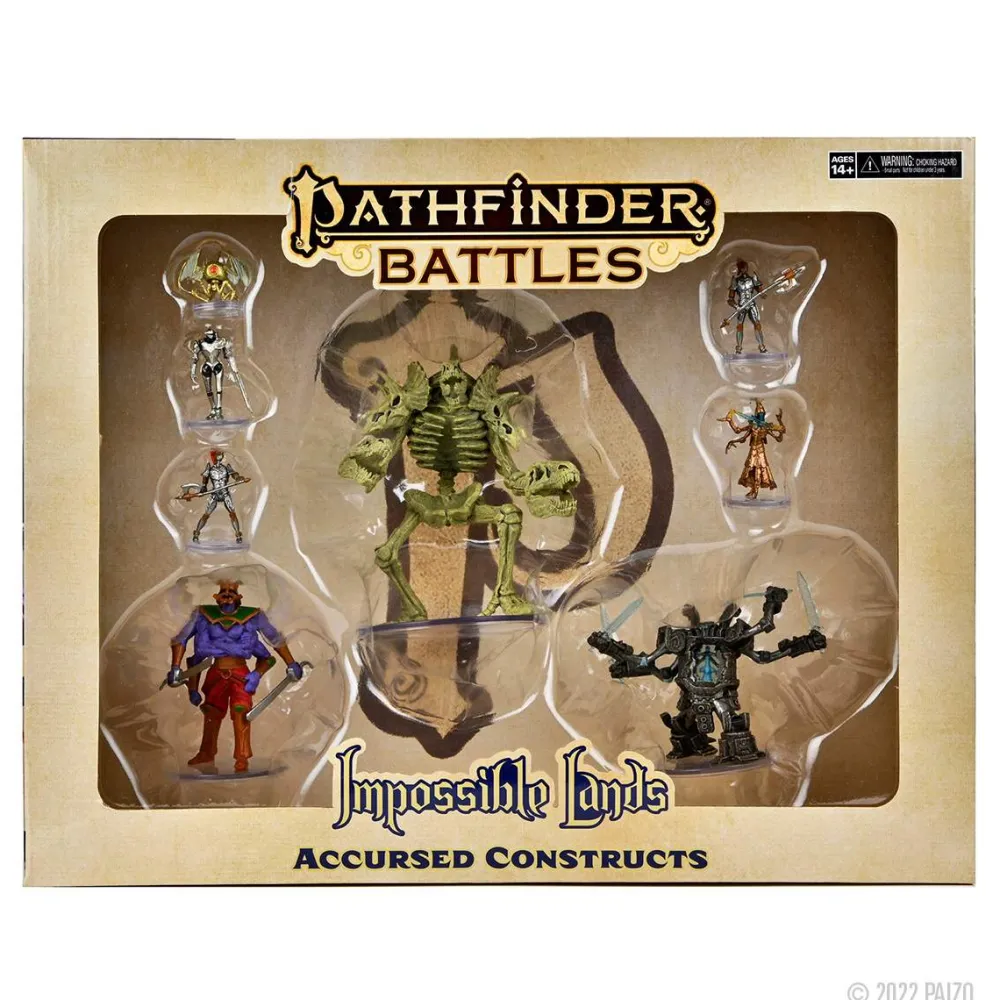 Pathfinder Battles: Impossible Lands – Accursed Constructs includes 8 all-new miniatures representing an exciting array of creatures from Pathfinder’s Impossible Lands setting!