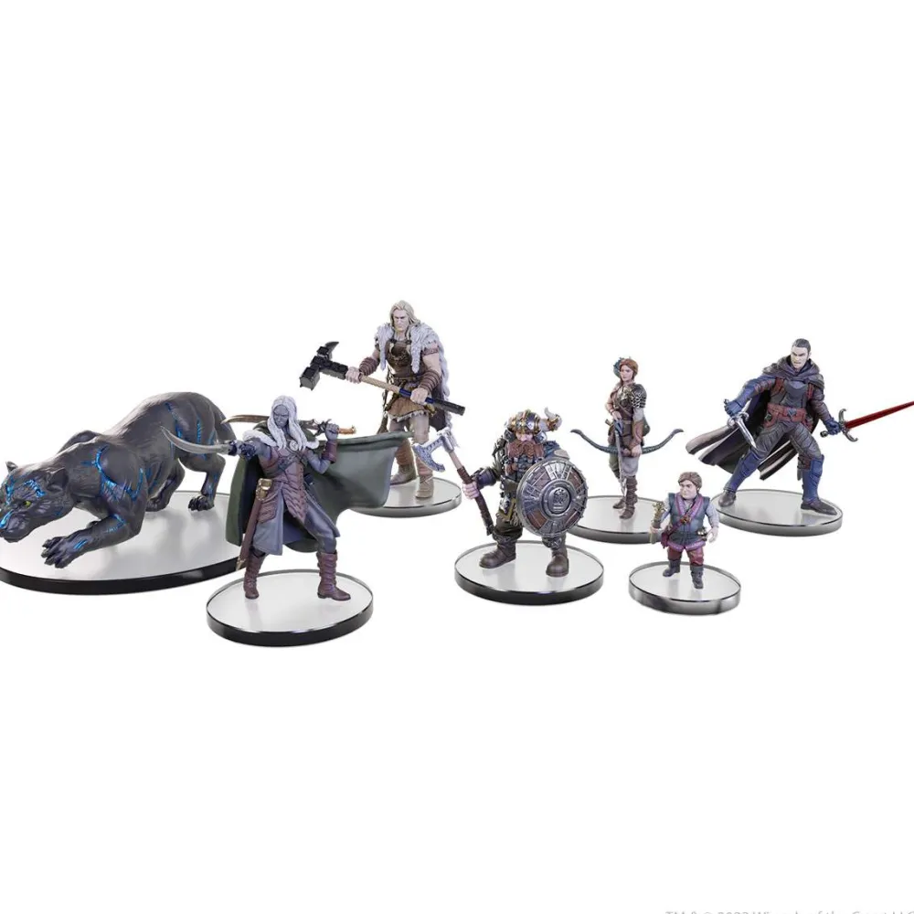 This set includes the dual scimitar-wielding drow ranger, Drizzt Do’Urden, and the dwarven king of Mithral Hall, Bruenor Battlehammer. These two are joined by Drizzt’s faithful panther companion, Guenhwyvar, the master archer, Cattie-brie, the Reghed barbarian, Wulfgar, and the roguish halfling, Regis.