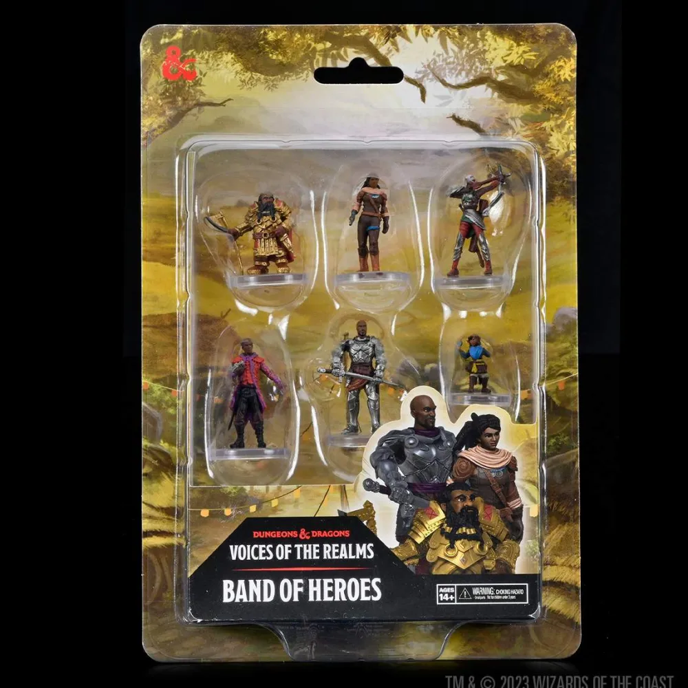 The D&D Voices of the Realms: Band of Heroes is a new line of miniatures based on existing D&D art geared towards diversity and inclusion. In this set, players can choose from a variety of class options for their next adventurer, while Dungeon Masters can quickly build engageing scenes for their players with this exciting mix of characters!