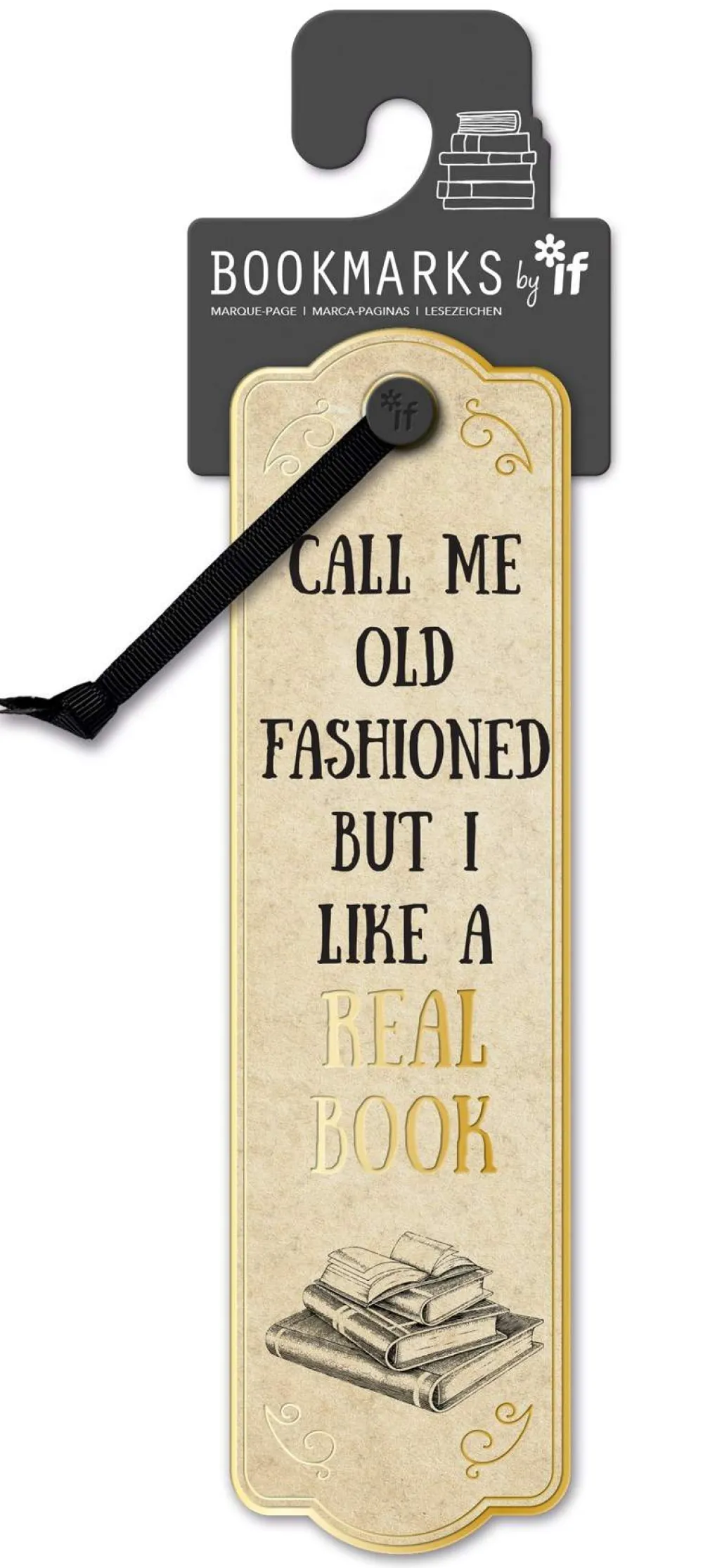 Bokmerke «The World Only Exists» i Academia Collection i kraftig kvalitetskartong med tekstilbånd. Bokmerket er trykket på FSC MIX Paper C134008.
