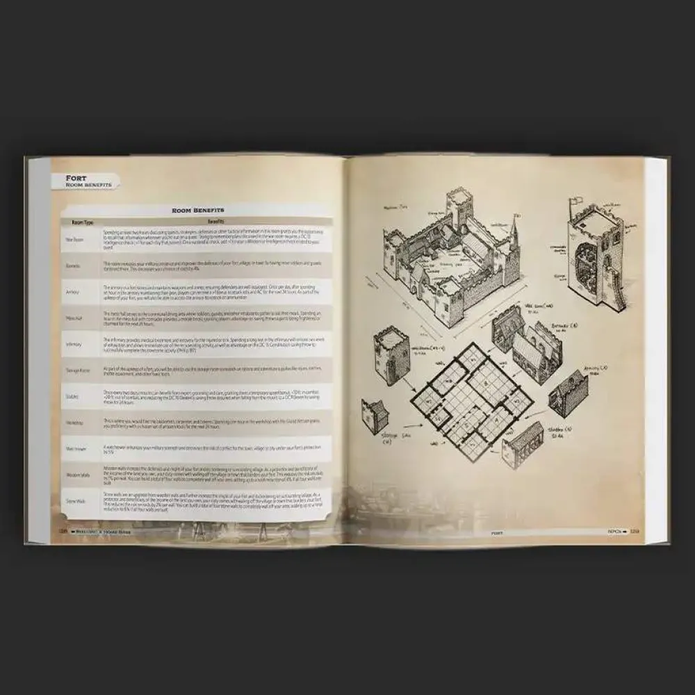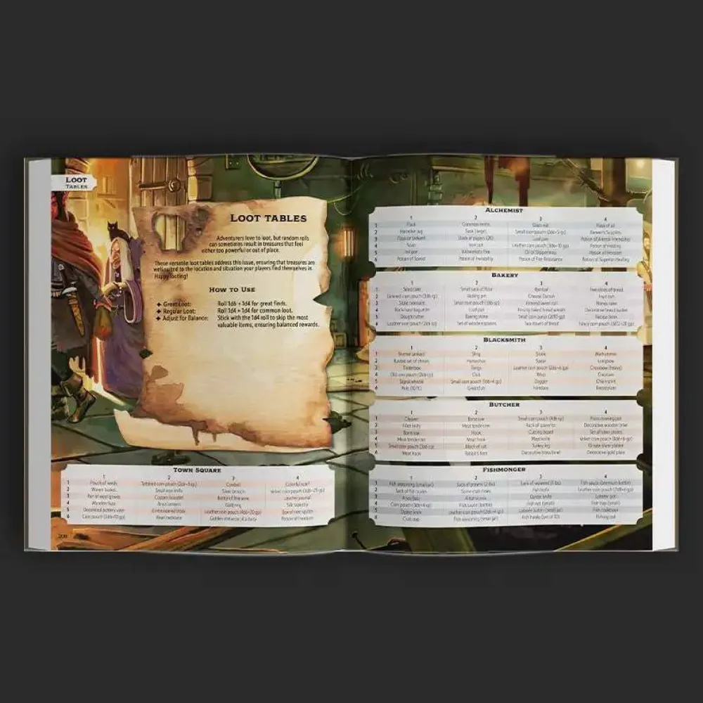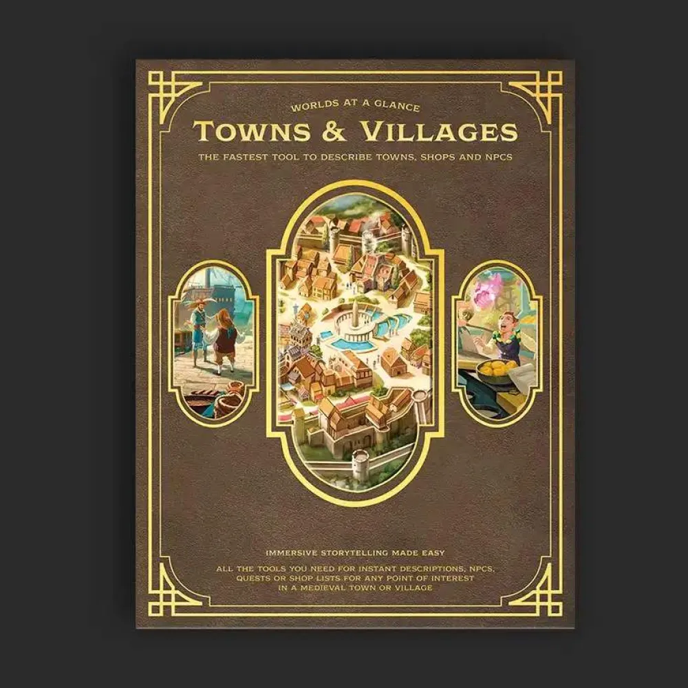 A full town builder to create flourishing and detailed towns & villages, alongside more than 30 chapters covering every aspect of different locations, shops, markets & more.