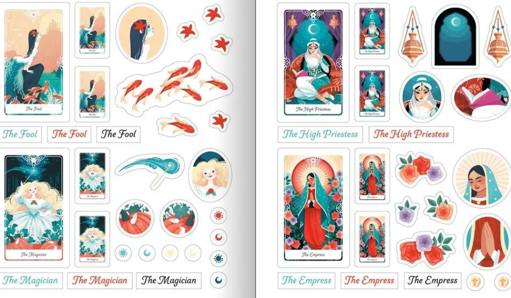 This portable sticker book is packed with over 1,000 vibrant, mystical stickers based on Tarot of the Divine, a traditional tarot deck rooted in multicultural deities, folklore, and fairytales. Sticker your planner with specific tarot cards as a reminder of where to draw your focus, decorate your stationery and tech accessories, or add to notes and birthday cards!